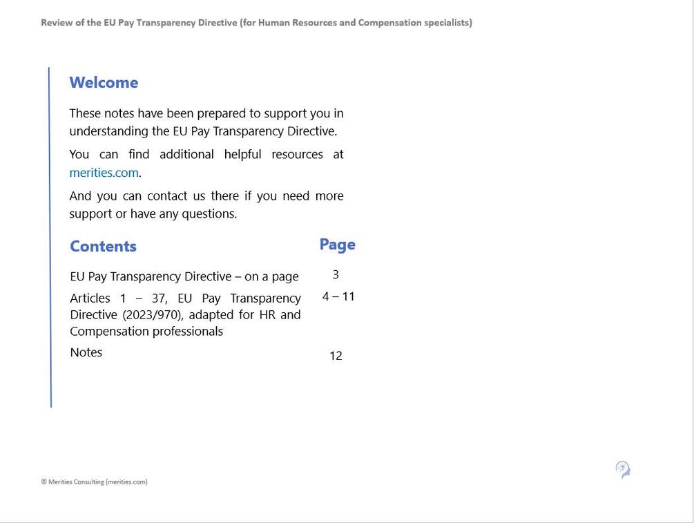 ✔ EU Pay Transparency Directive on a Page: Simplified and easy-to-digest overview.
